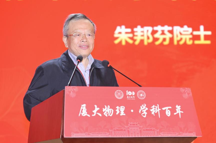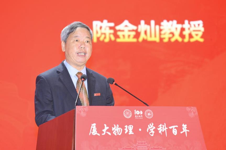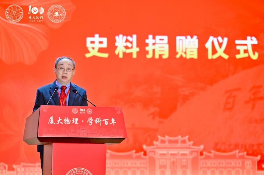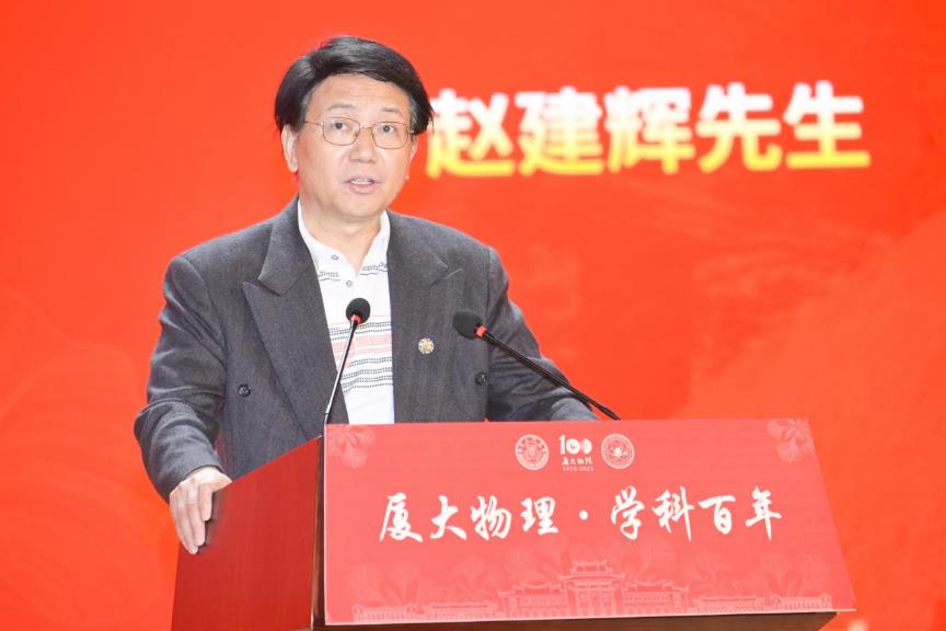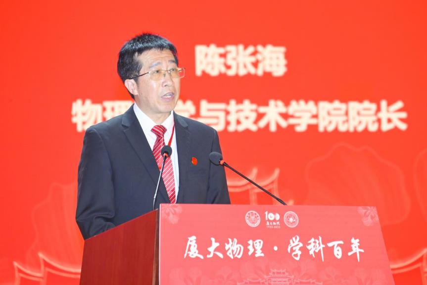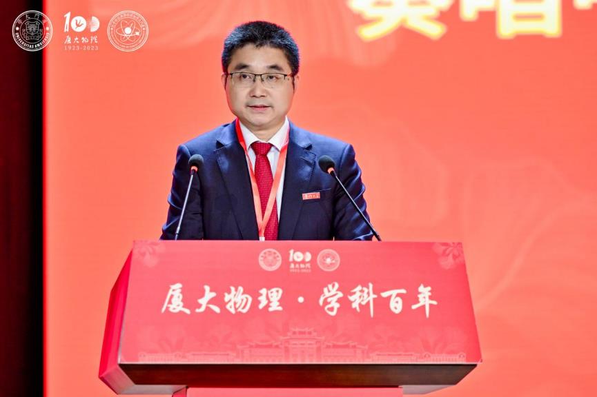厦门大学校长张宗益在致辞中指出,厦大物理始终秉持“自强不息,止于至善”的校训,坚持“研究高深学问,养成专门人才,阐扬世界文化”的办学宗旨,与祖国和人民共命运、与时代和社会相偕行。他对厦大物理学科的发展提出了三点要求:一是要坚持“立德树人”,培养一流人才;努力培养造就能够适应和引领新一轮科技革命和产业变革的高素质复合型物理人才;二是加强顶层谋划和前瞻布局,瞄准国际科学前沿和国家战略需求,加大人才引进力度,打造一批基础及应用研究创新团队和国家级创新平台;三是要牢记“国之大者”,作出一流贡献,解决社会经济发展中的实际问题,大力发展应用研究和高新技术研发,促进科技创新与成果转化融通发展,为服务构建新发展格局提供有力支撑,展现百年物理的关键作为和家国担当。