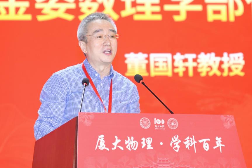 国家自然科学基金委员会数理学部常务副主任董国轩教授代表基金委致辞,他表示厦大物理一直以来秉持交叉学科发展战略,开拓创新,对我国物理学科的发展起了重要作用。希望国家自然科学基金委员会及数理学部与厦大物理学科能够进一步合作从而推动物理学科的发展。