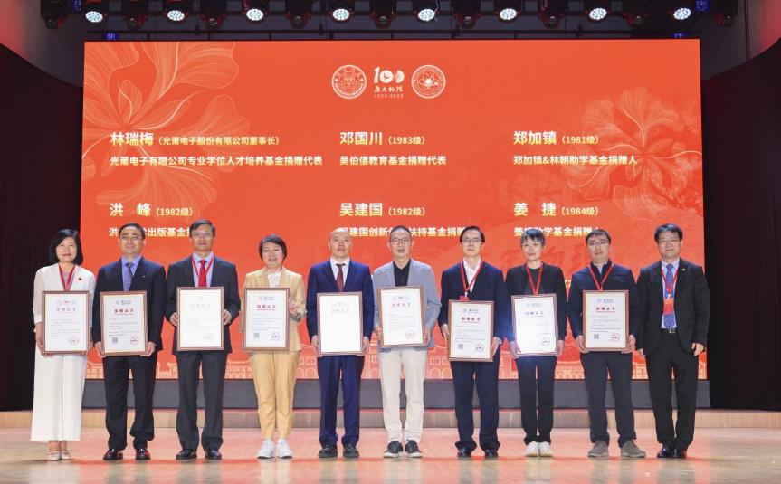 在嘉庚精神的感召下,遍布全球各行各业的厦大物理校友和社会各界朋友长期通过设立奖助学金、成立专项资金、成立校友合作企业等各种方式捐资兴学,会上还对支持母校建设作出贡献的校友进行了表彰和颁发证书。