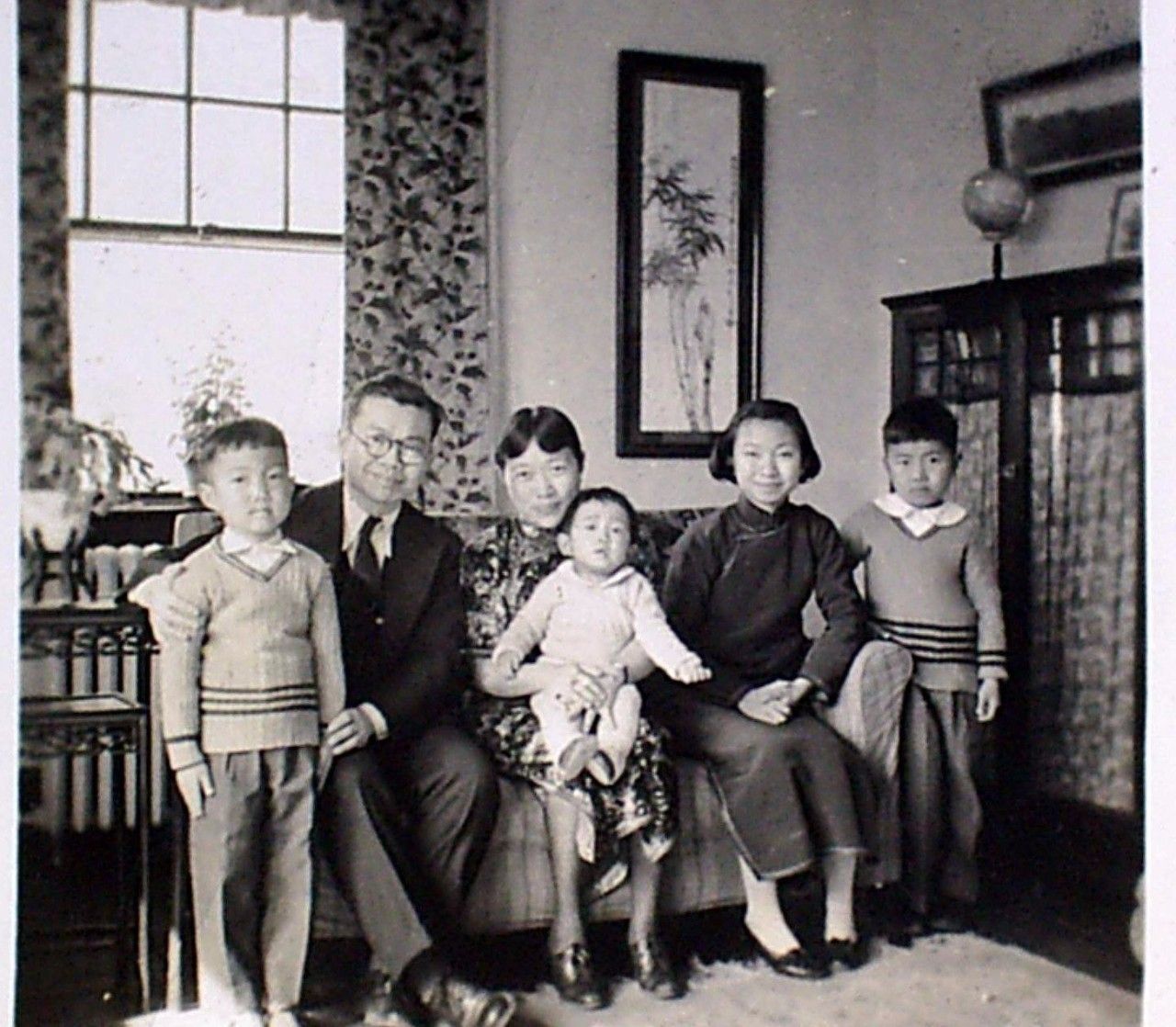 1935年,谢玉铭一家合影(从左至右分别为长子谢希文、谢玉铭、夫人张舜英、幼子谢希哲、长女谢希德、次子谢希仁)