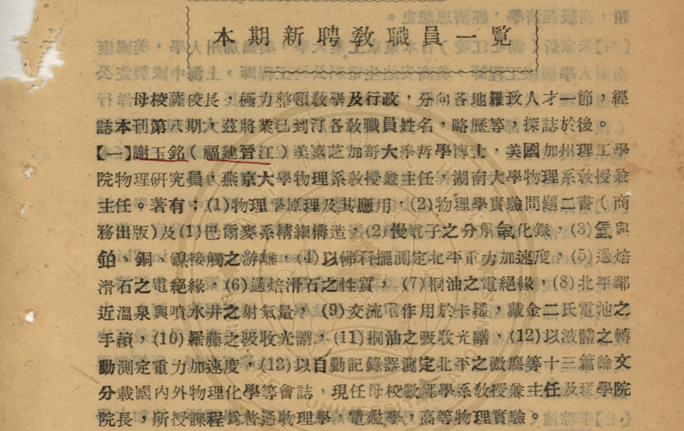 1939年12月31日厦大通讯,新聘教职员介绍之谢玉铭